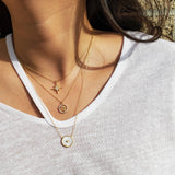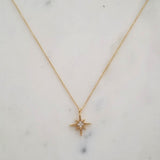 Pavé crystals light the way from the center of this gold north star pendant, gleaming golden as any sun.