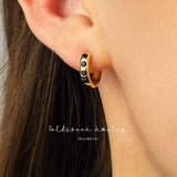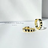 BRINLEY EARRINGS - BLACK DOTS ACCENTED HUGGIE EARRINGS