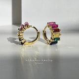 THISBE EARRINGS - RAINBOW BAGUETTE HUGGIE EARRINGS